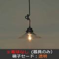 | 【商品セット内容】 ●透明P1硝子セード ●スチール(黒塗装) ●小口ホルダー(黒塗装) ●E-26モーガルソケット ●黒コード ●引掛シーリングキャップ付 ●黒CPフレンジ ●丸木自在(茶)付 |