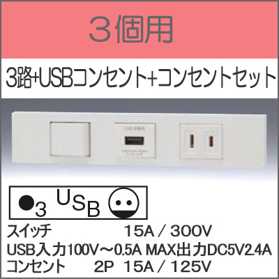 3路 + USBコンセント + コンセントセット |