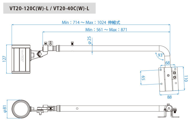 【 仕様 】ビュートロン VT20 Lアームセット VT20-40W-L